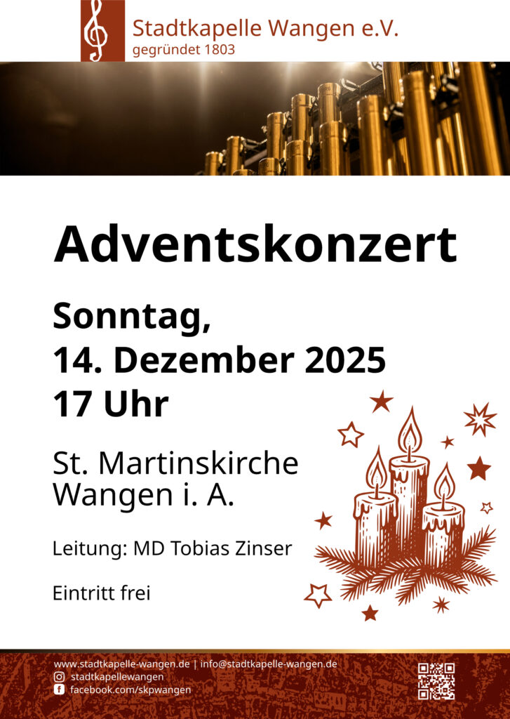 Am 3. Adventssonntag, 14. Dezember, spielt die Stadtkapelle Wangen unter anderem in vollständiger Blasorchesterbesetzung ihr diesjähriges Adventskonzert. Um 17 Uhr startet die musikalische Stunde in der Stadtpfarrkirche St. Martin im […]